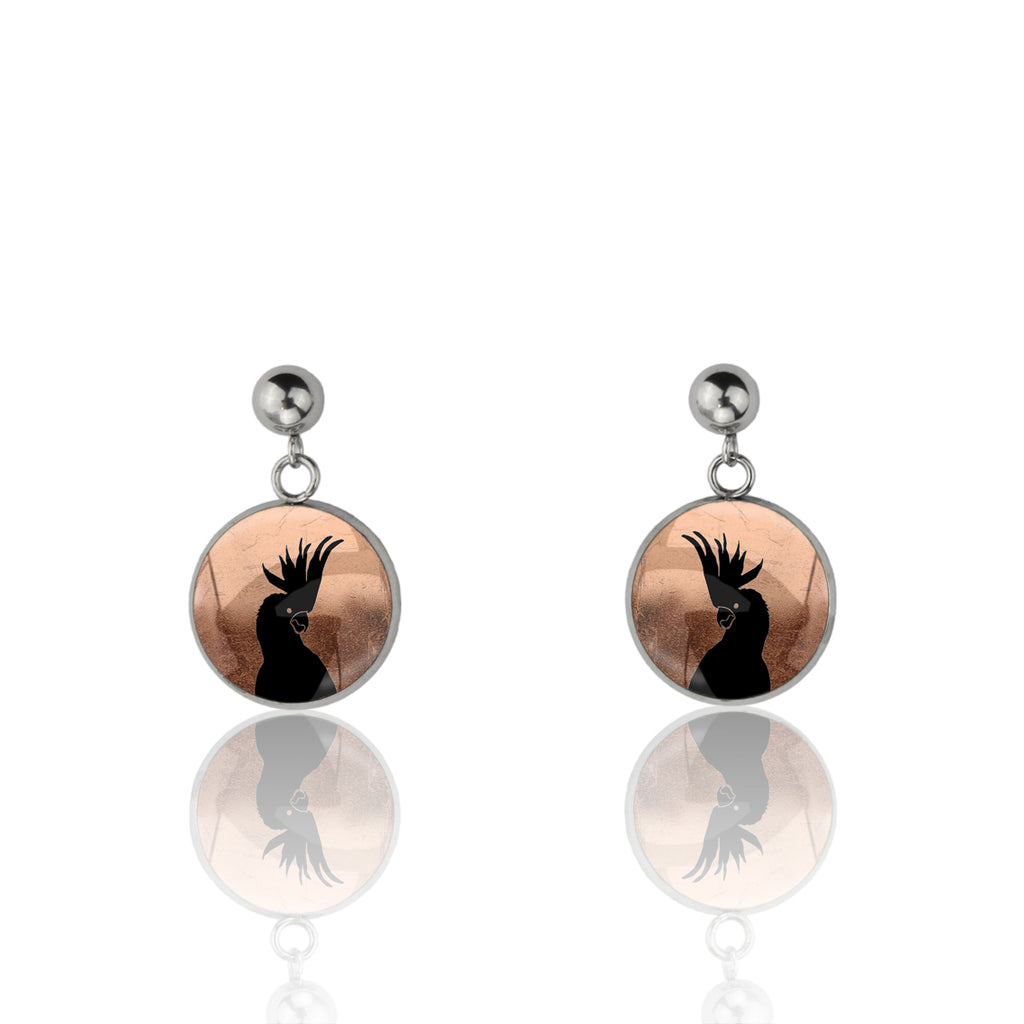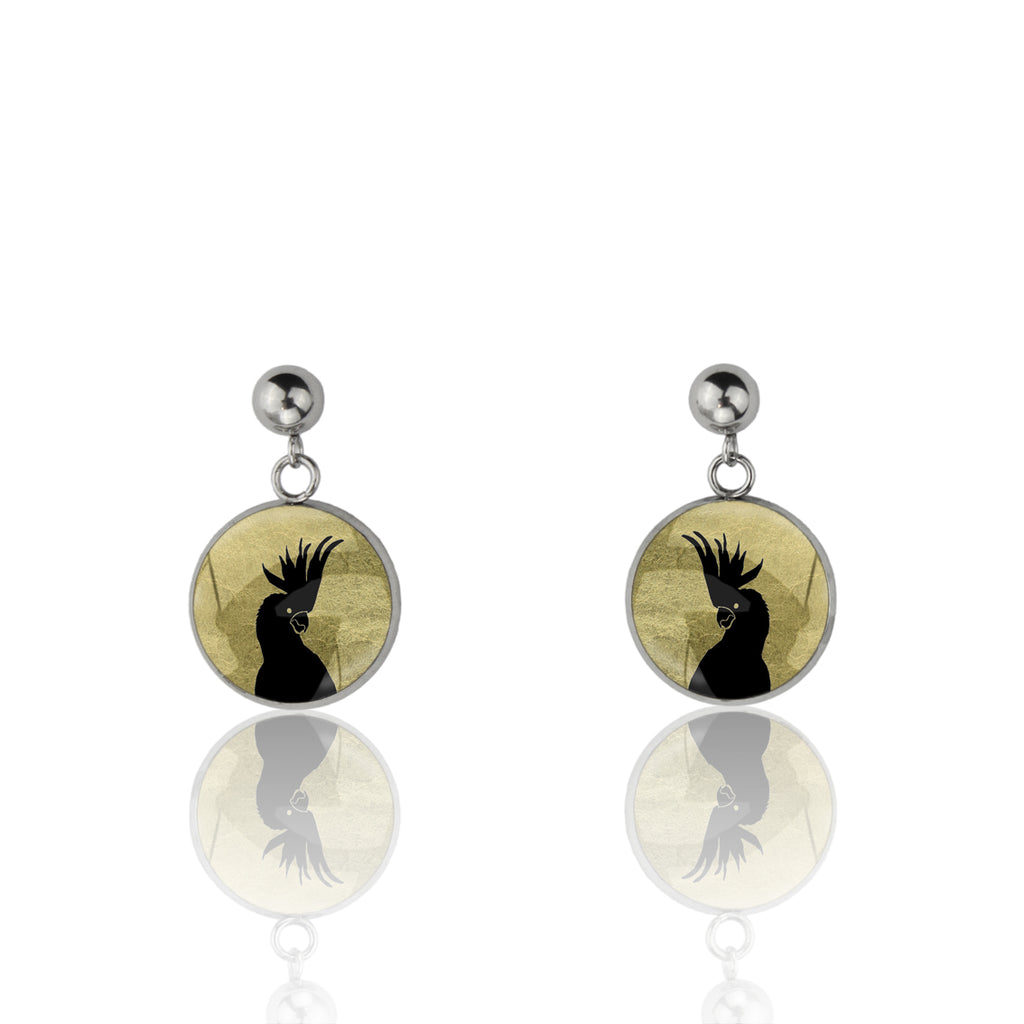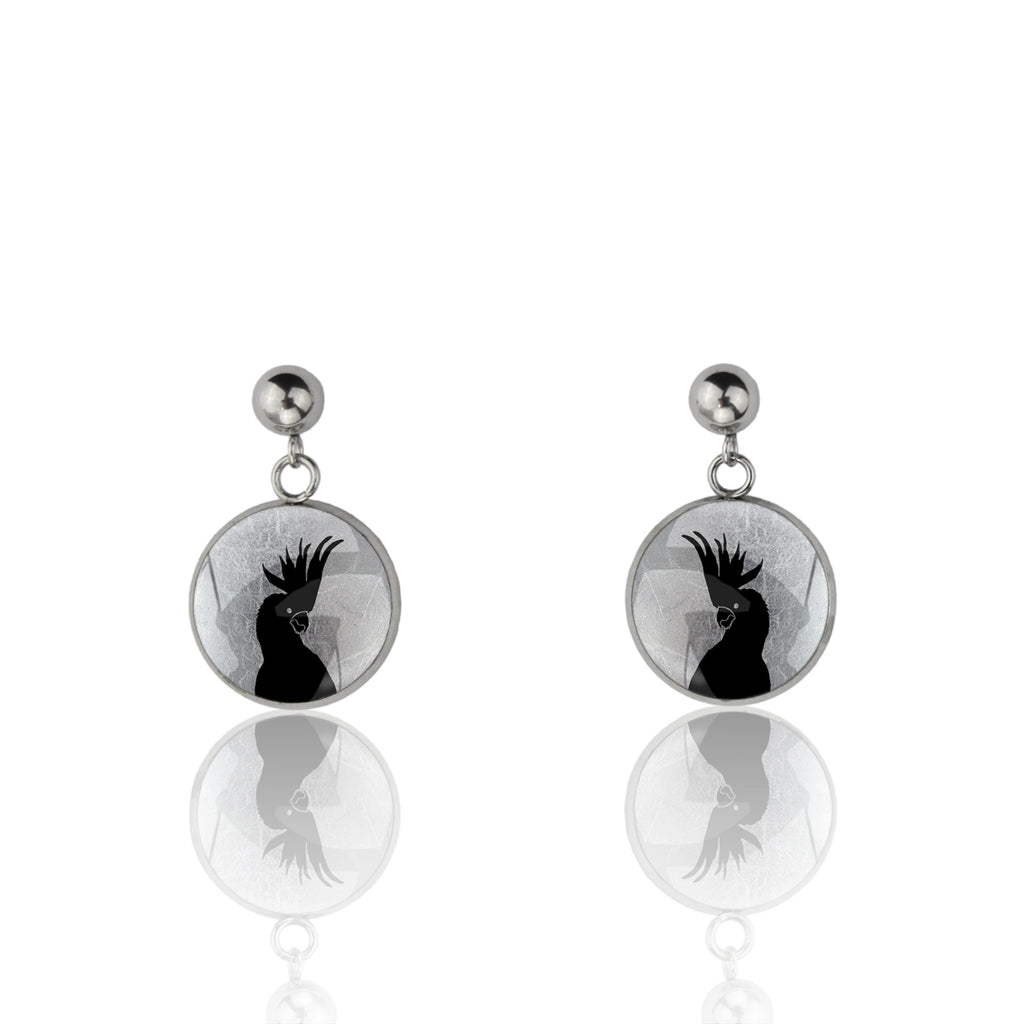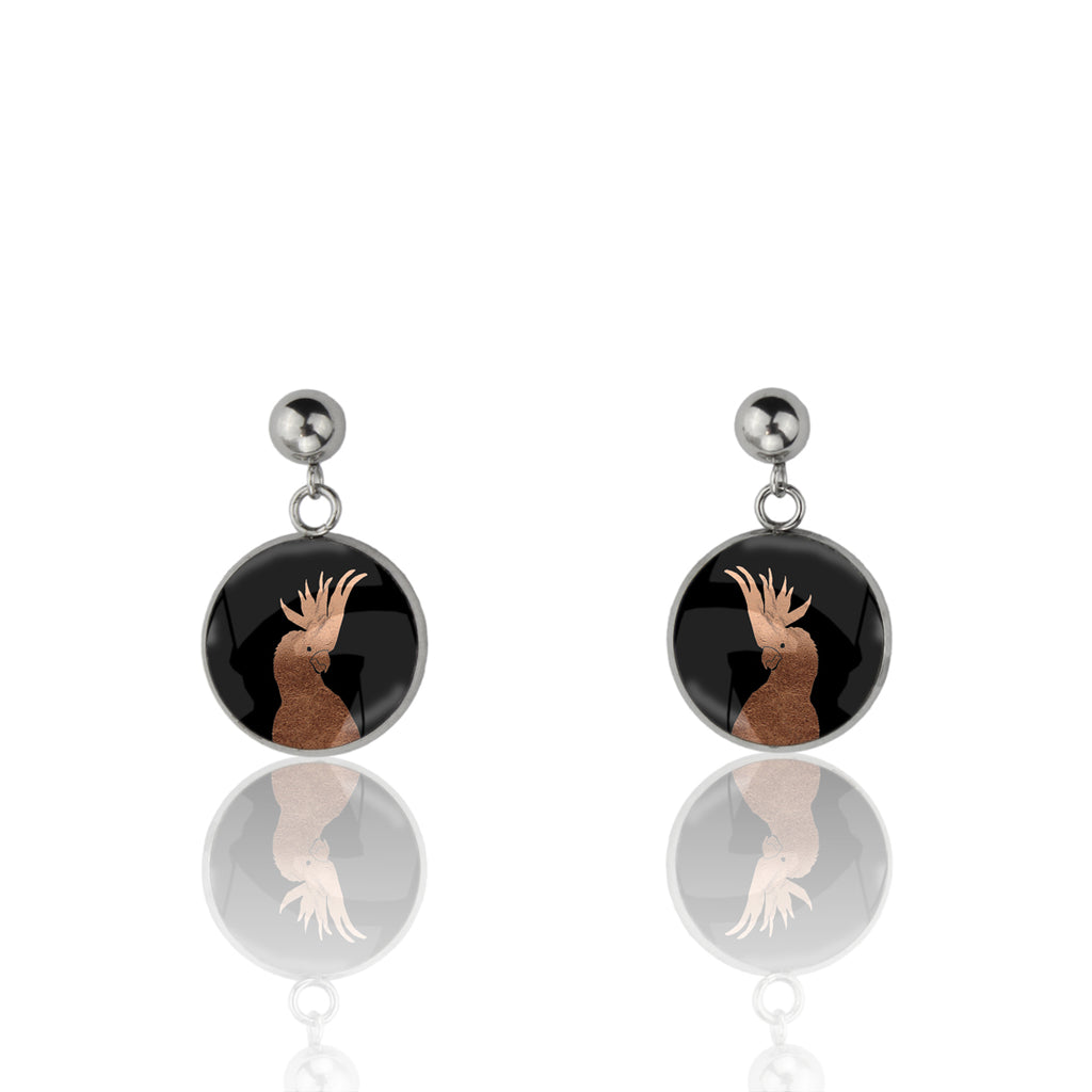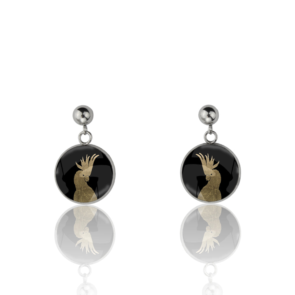 COCKATOO CLOSE-UP DANGLE DROP CIRCLE EARRINGS - MFY228