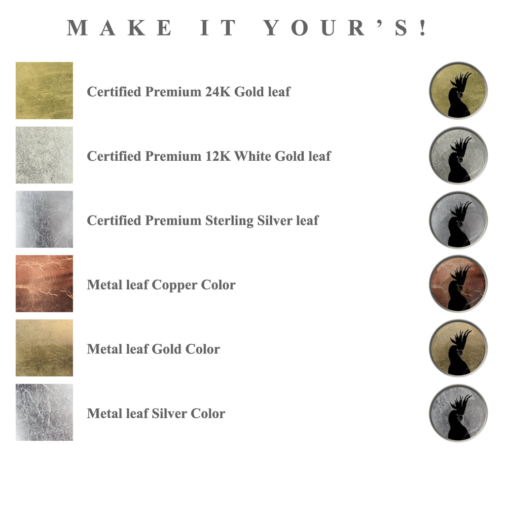 • Stainless steel with resin and Dutch gold, silver or copper leaf