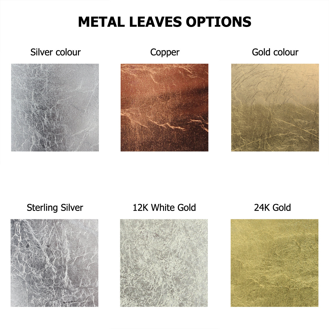 - Stainless steel with resin and Dutch gold, silver or copper leaf